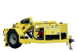 Self-contained diesel, gasoline,and propane powered hydraulic drive systems designed to handle your applicationManual holding brake, Centralized control station, Powered forward & reverse tension, Adjustable pintle eye, hitch, & safety chains, Fold-away torque jack, Wheel chocks with storage compartment, Rear stabilizing lift jacks, Self-loading powered reel raise and lower